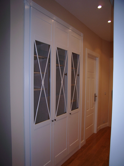 Armario de puertas acanaladas con detalle de cristal impreso a paño de la puerta